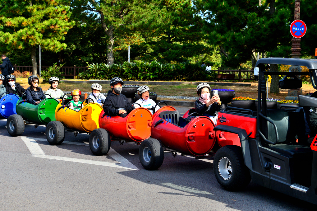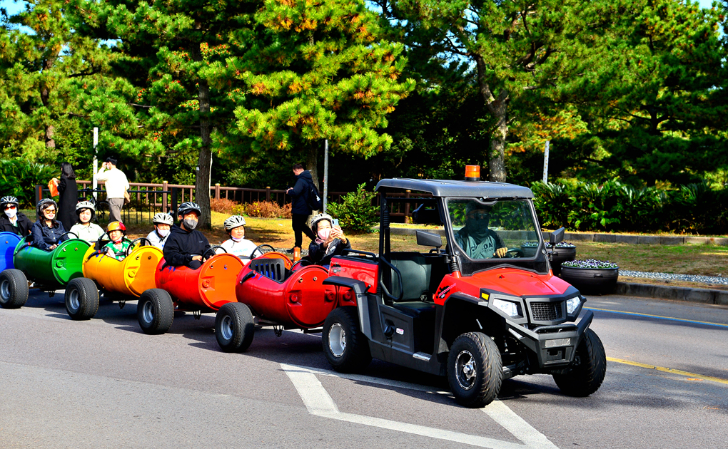 줄줄이 이어진 객차에는 어른, 아이 구분 없이 제각기 한 자리씩 차지하고 드라이브를 만끽하고 있다.