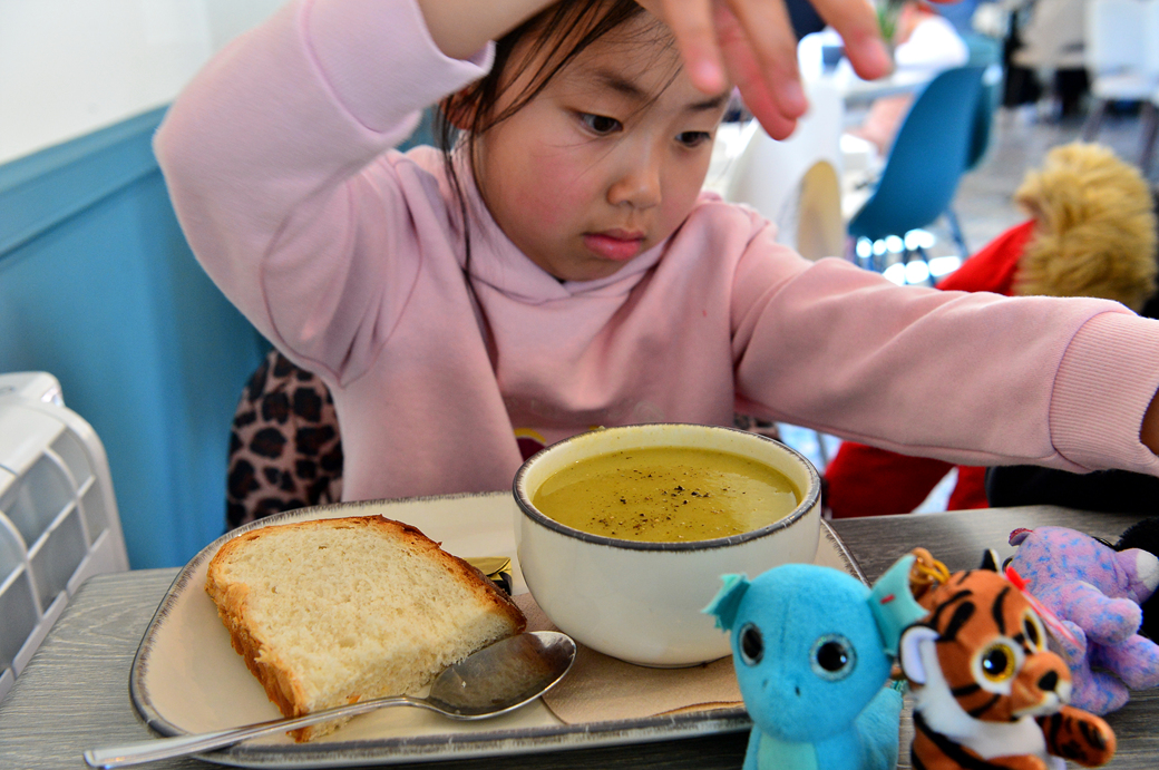 수프까지 주문한 손녀의 브런치 식단이다.