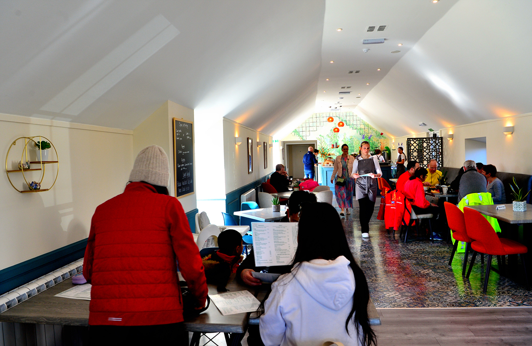 뉴버그의 카페 안에 들어선 모습이다.