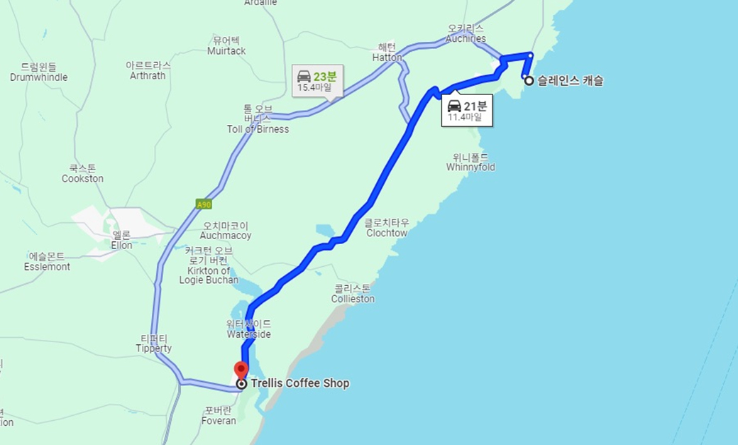 뉴버그의 카페에서 브런치를 즐긴 후, 오늘의 목적지 슬레인스 캐슬 Slains Castle로 가기 위해서 다시 길을 나선다.