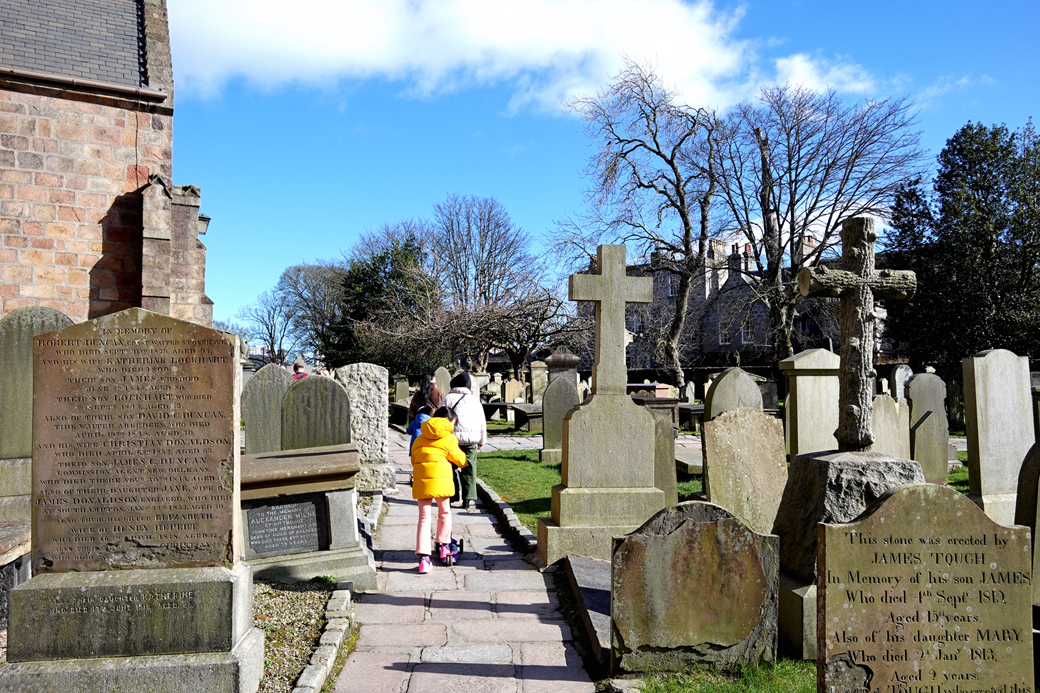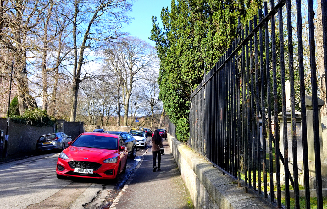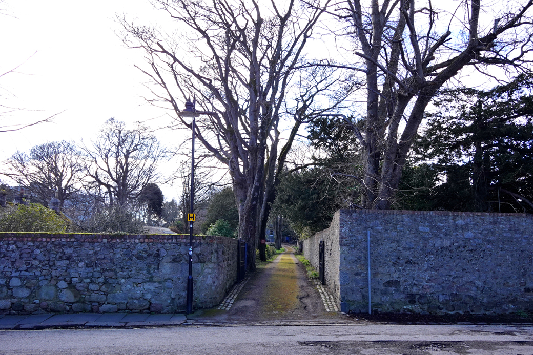 교회 앞의 이 길은 아버딘 대학으로 이어진다.