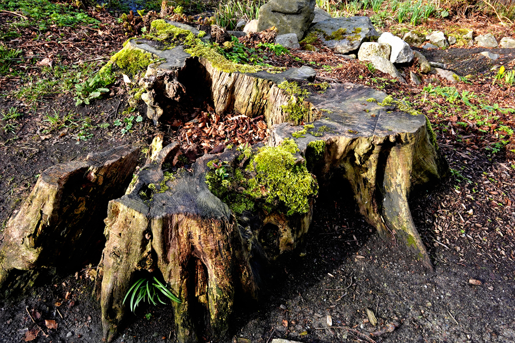 잘려나간 고목의 등걸이 이곳을 거쳐간 유구한 세월을 대변해 주는 듯하다.
