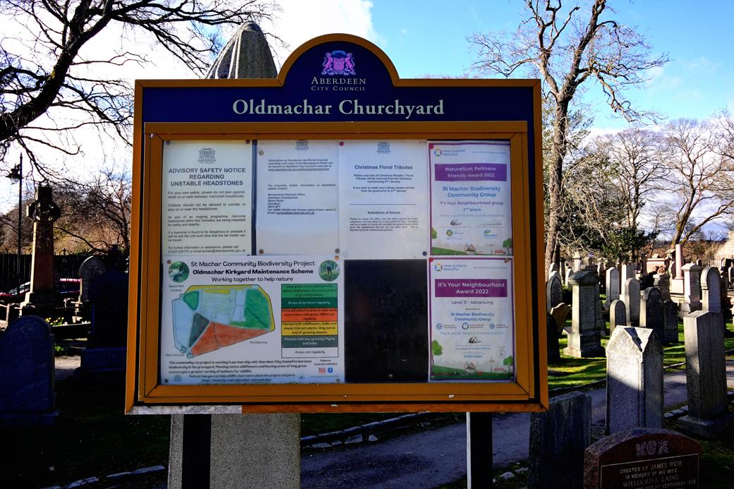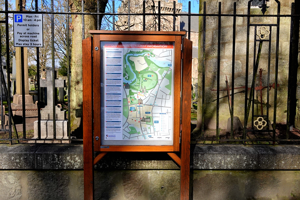교회 담장에 세워져 있는 올드 아버딘 관광 안내판이다.