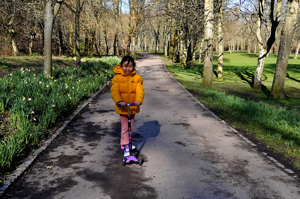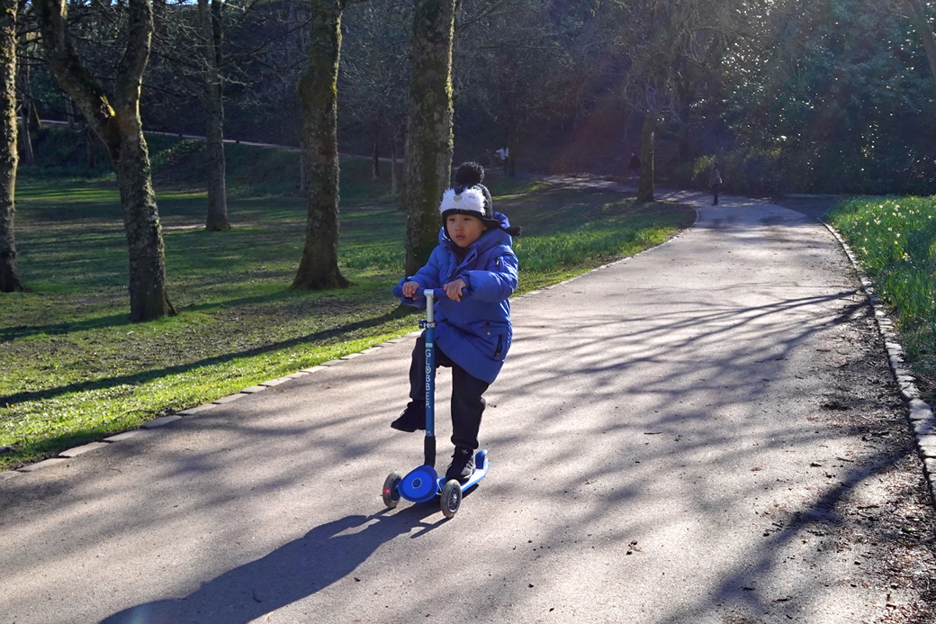 무척 활동적인 손녀의 킥보드 타는 모습을 보는 것만으로도 행복감이 느껴진다.