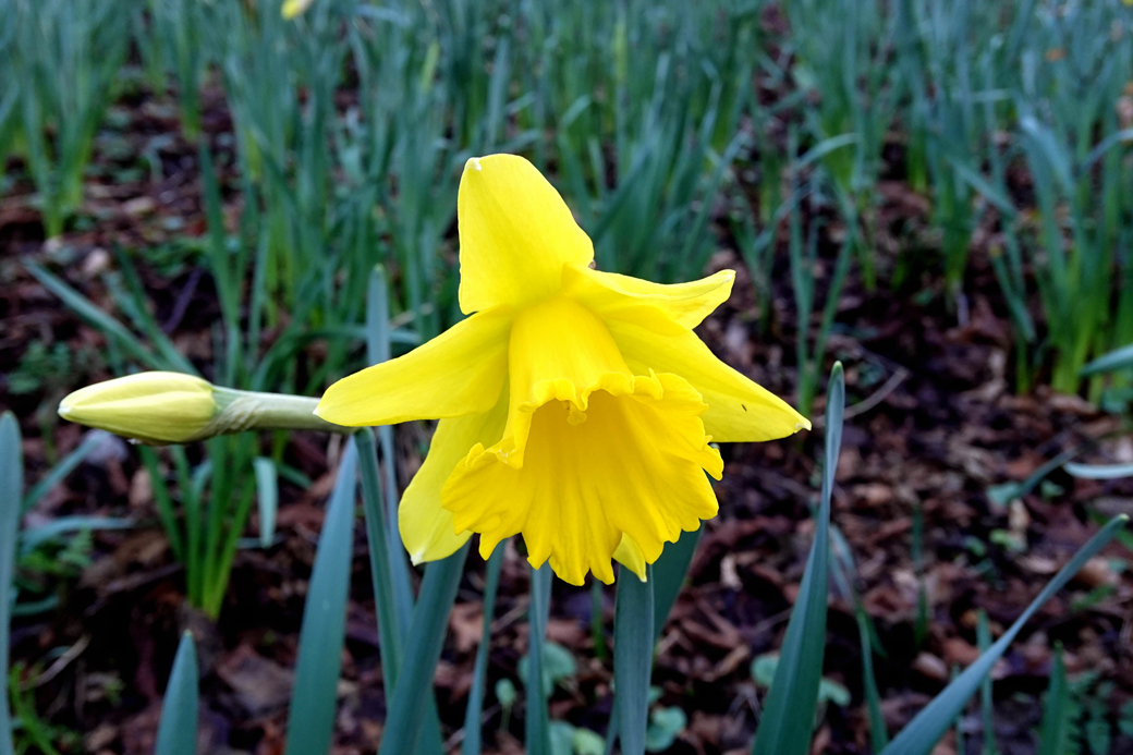 언덕길 주변으로는 아름다운 수선화가 피어 있다.