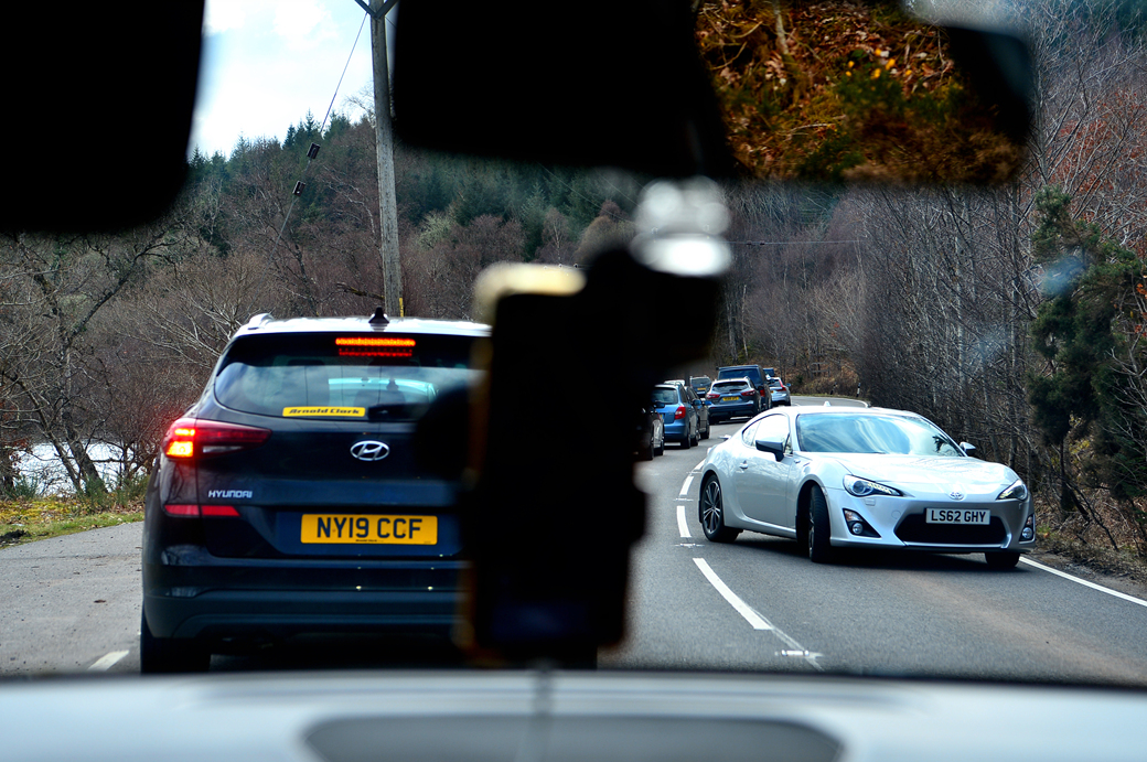 앞서 가던 차량들이 모두 멈춰 있고, 급기야는 방향을 돌리는 차량도 보인다.