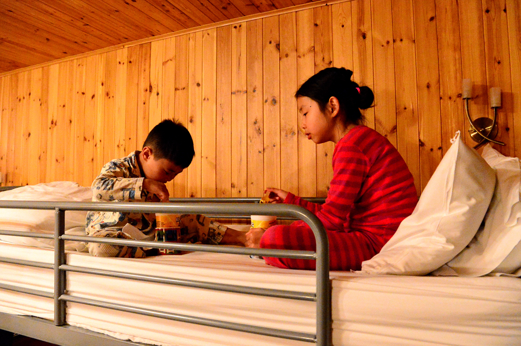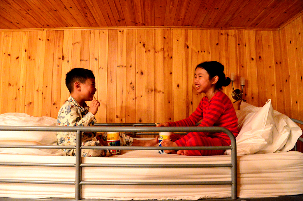 우리 방에만 있는 2층 침대가 마음에 들었나 보다.