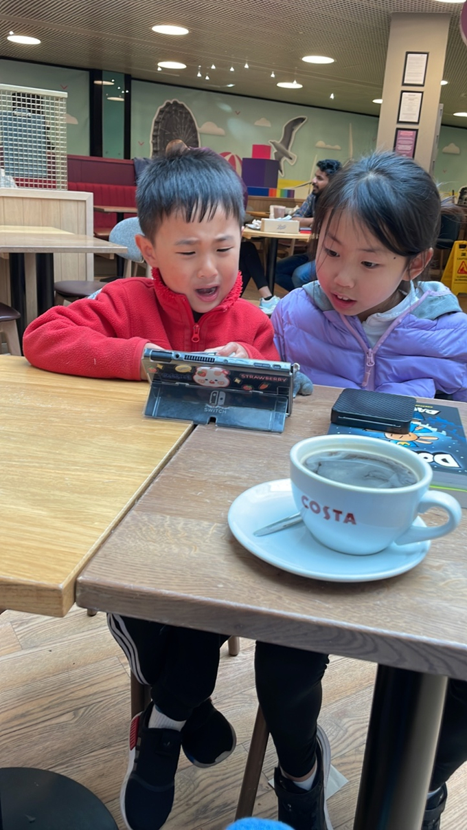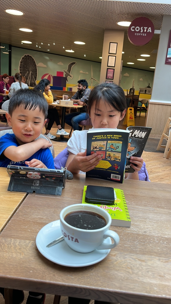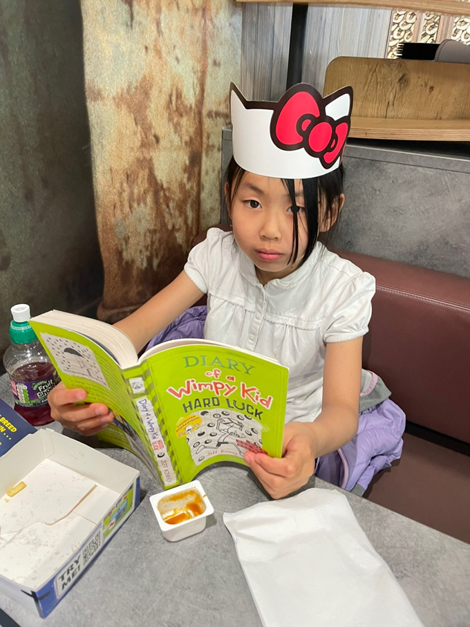 학교 생활 사진에 이어 카페에서 찍은 손주들 사진도 보내왔다.