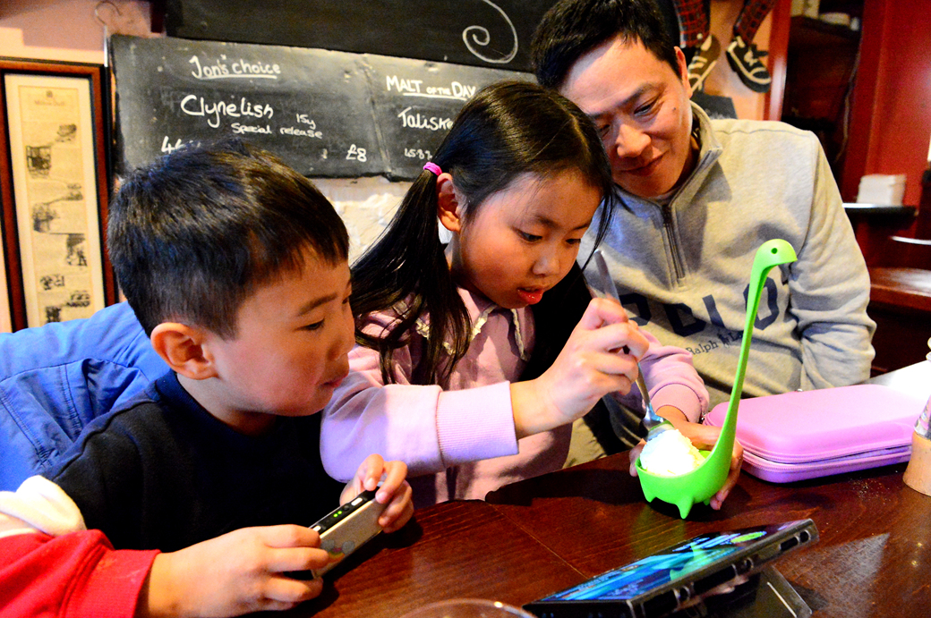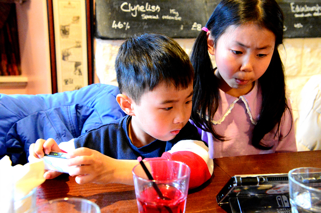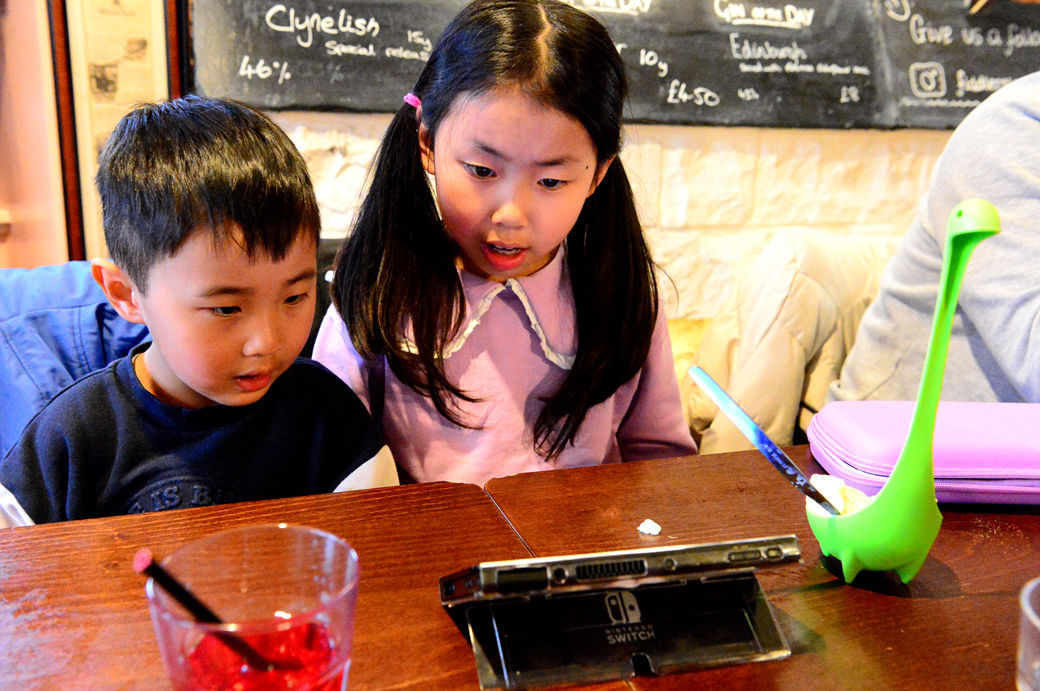 식사를 마치고 곧장 게임기에 몰두하는 손주들~