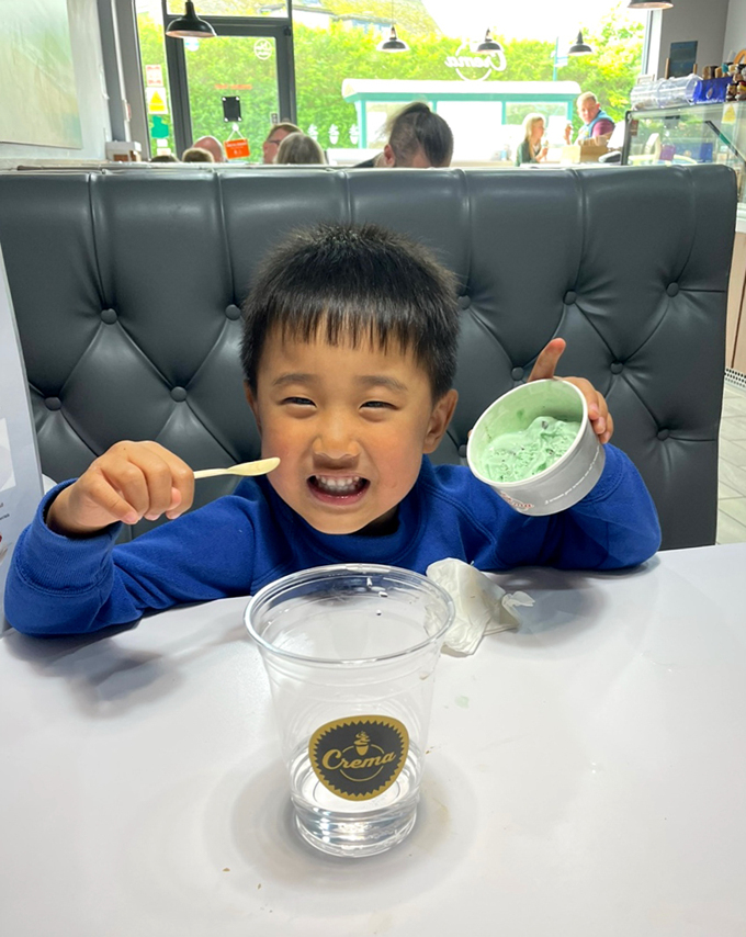 아이들 후식으로 나온 아이스크림 용기가 무척 특별하다.