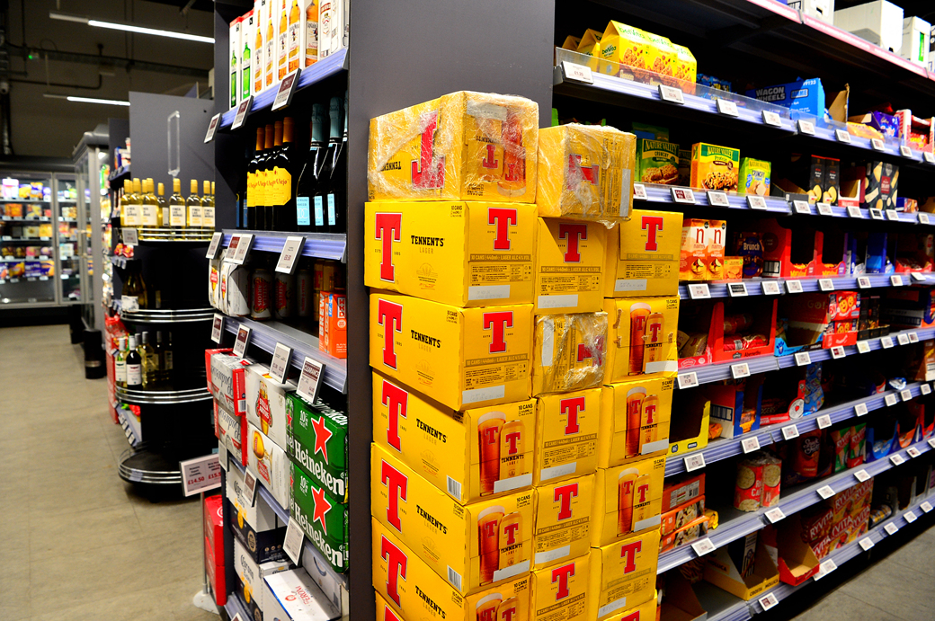 식사 때 먹었던 맥주가 엔드 매대에 쌓여 있다.
