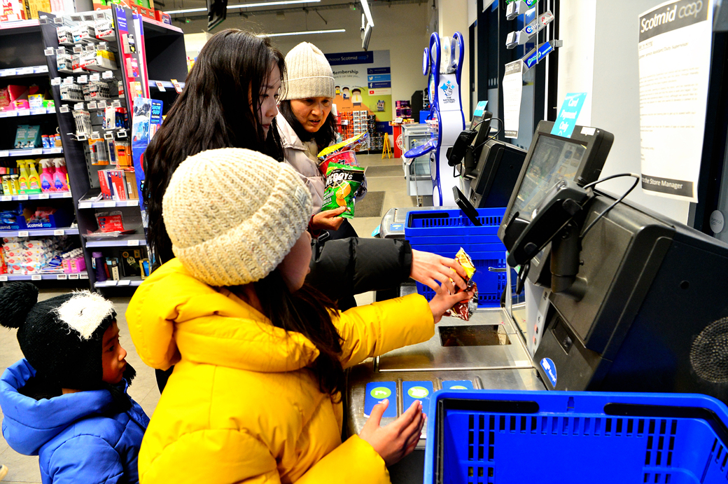 도시의 대형 마켓에서만 셀프 계산인 줄 알았는데, 산골의 이 마켓에서도 셀프 계산을 하고 있다.