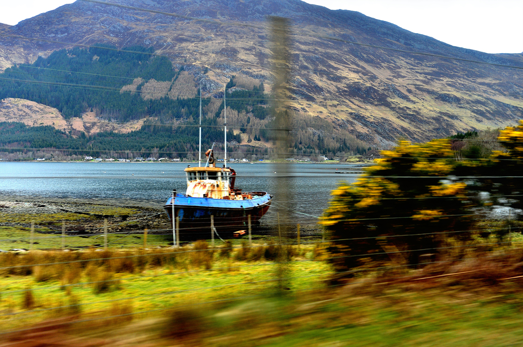 호숫가의 낡은 어선도 스쳐 지나간다.