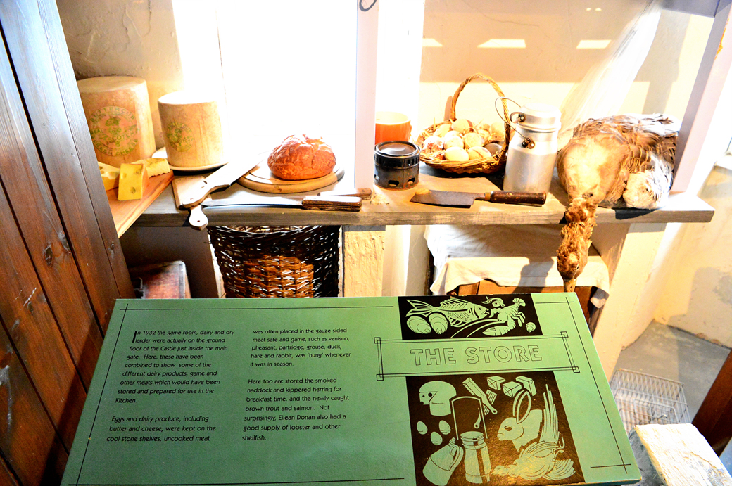 여기에 아침 식사로 훈제 대구와 청어, 갓 잡은 갈색 송어와 연어도 보관되어 있었다고 하며, 당연히 Eilean Donan