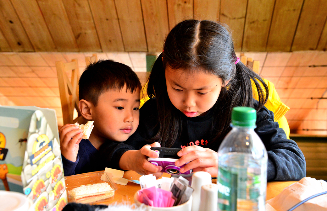 휴식에 들어간 손주들은 그동안 찍었던 자신들의 카메라 사진을 살펴보기 시작하고~