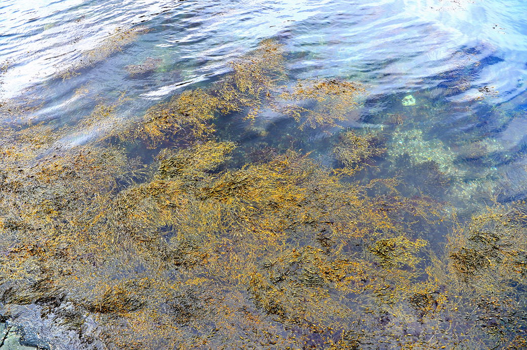성 주변의 호수 물에는 각종 조류가 잔뜩 퍼져 있다.