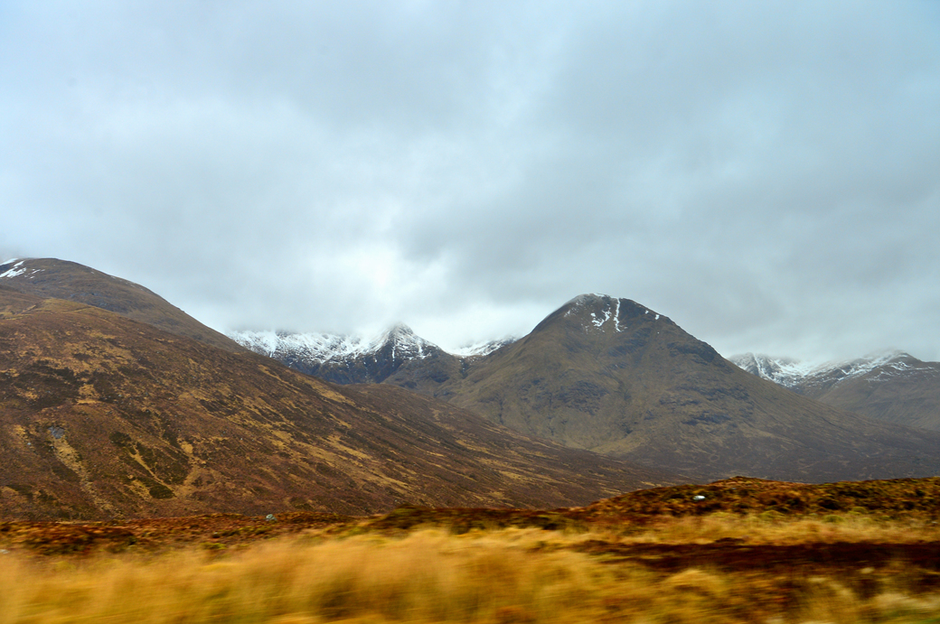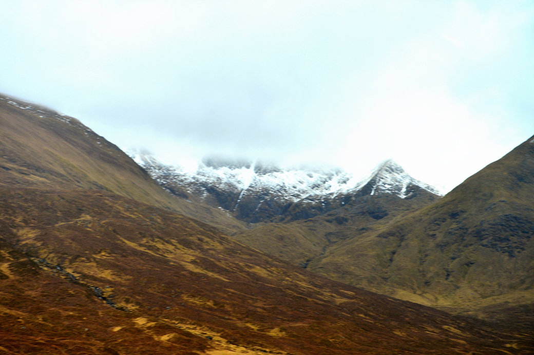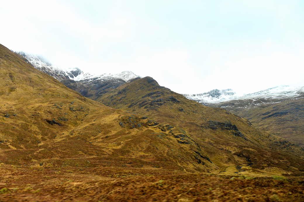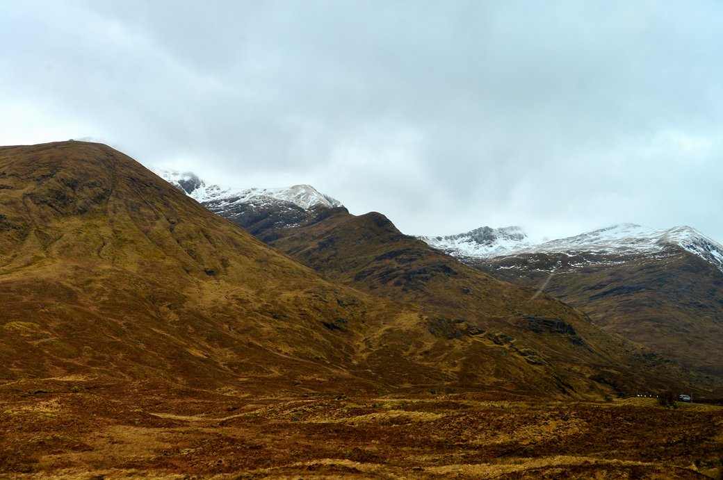 봉우리마다 하얀 눈을 이고 있는 이 산들 뒤쪽에 영국에서 가장 높다는 벤 네비스 Ben Nevis 산이 있다.
