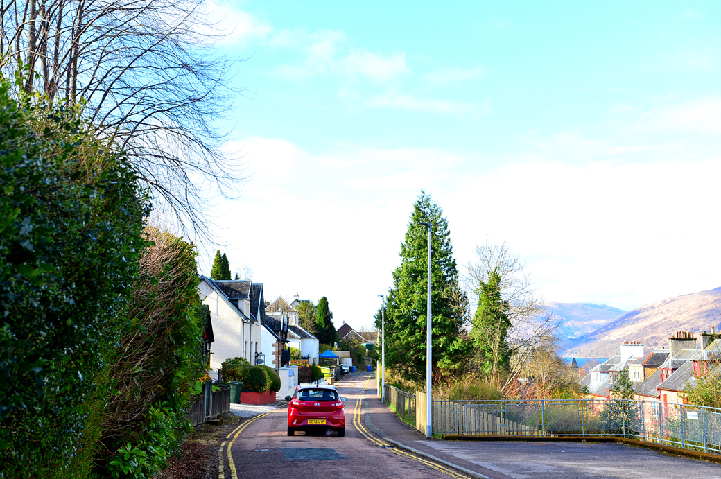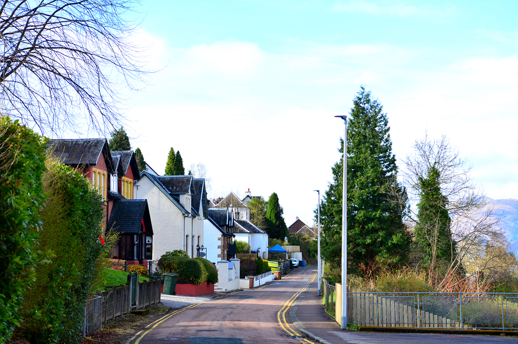 스카이섬 투어의 전진기지로 삼았던 포트 윌리엄의 아파트 뒤를 통과하는 언덕 위의 도로 주변 풍경이다.