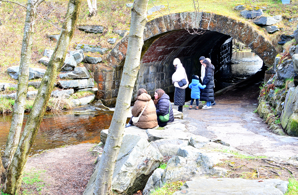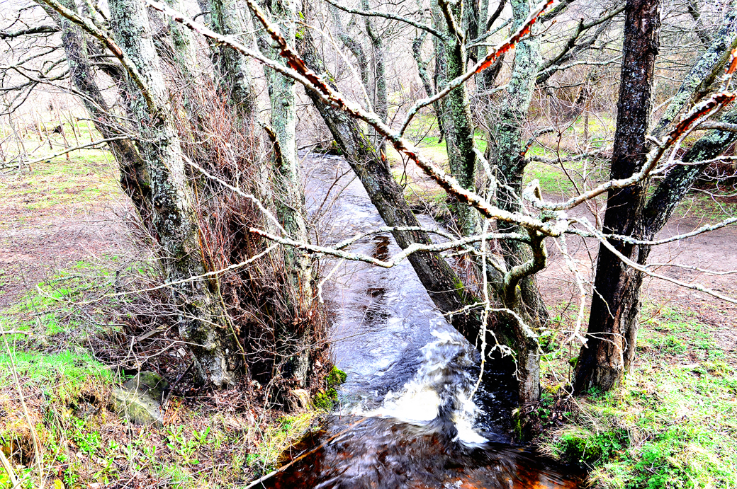 통로를 따라 흘러들어온 물은 나무 숲 사이로 흐르고~