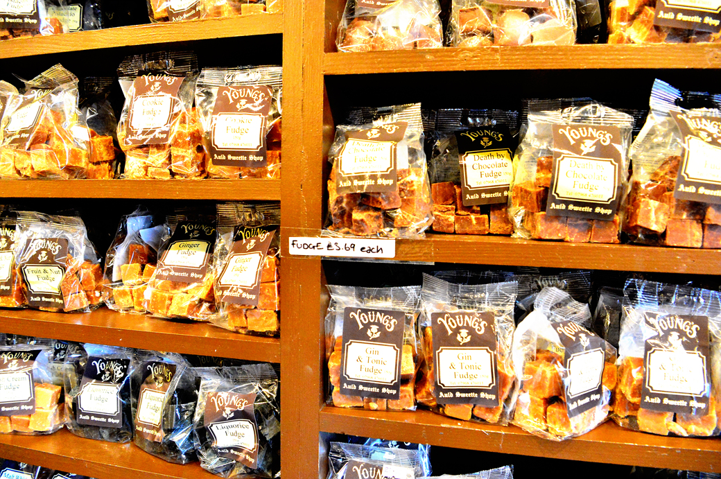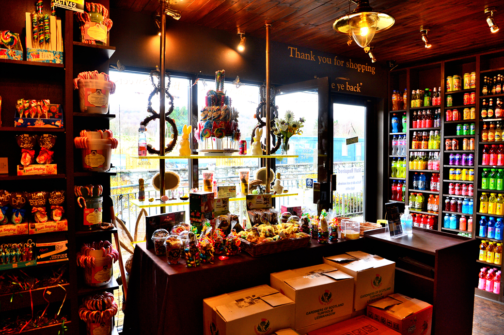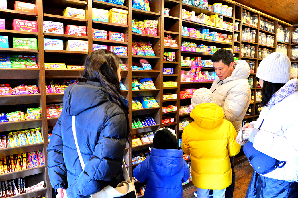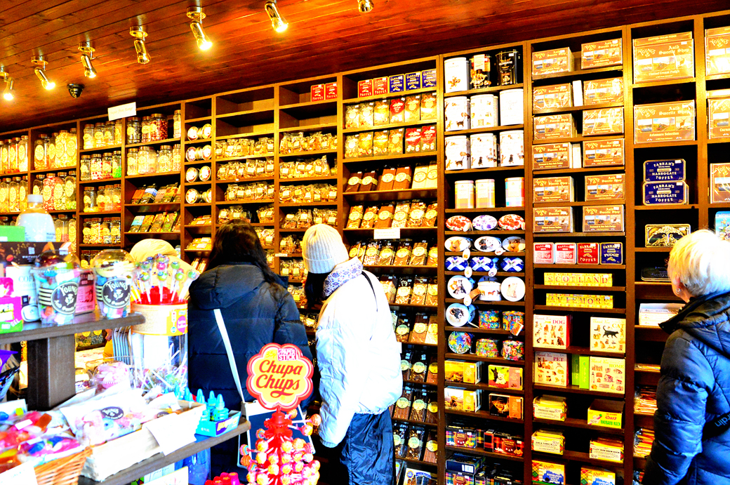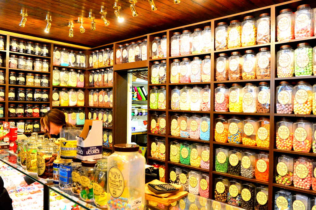 벽면을 가득 채우고 있는 병 안에도 각종 과자들이 들어 있다.
