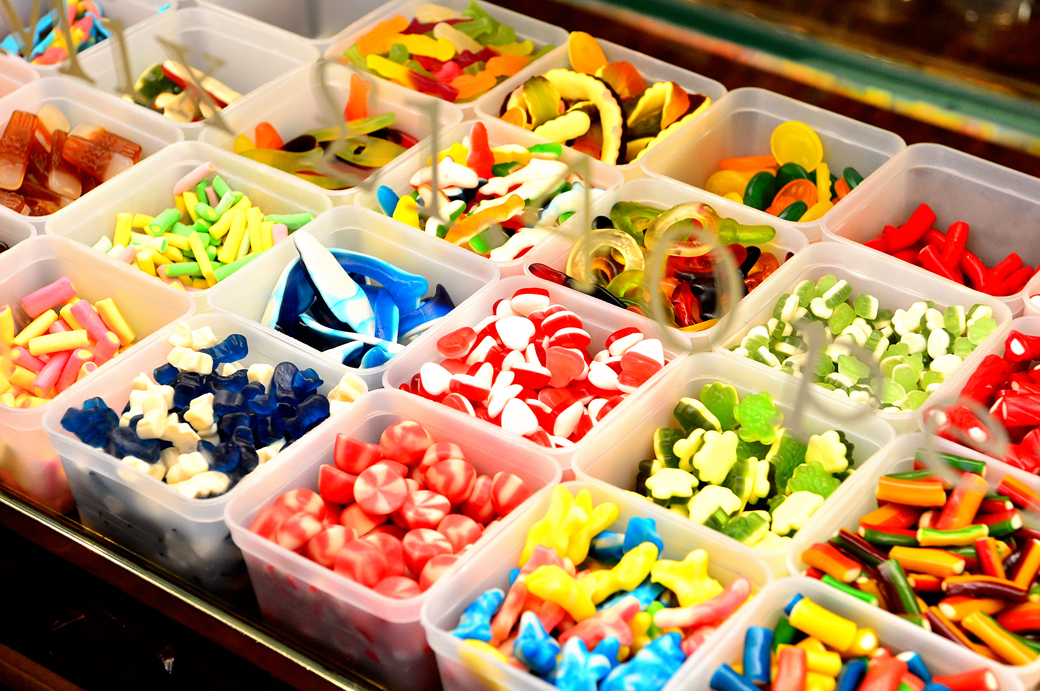 매대 중앙에는 색색의 젤리도 놓여 있고~