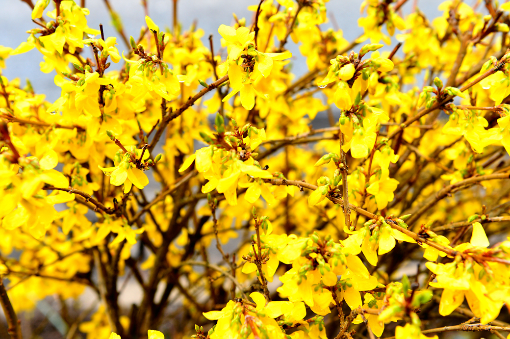 예의 도로변의 그 가시 돋친 노란 꽃이 아니라 진짜 개나리다.