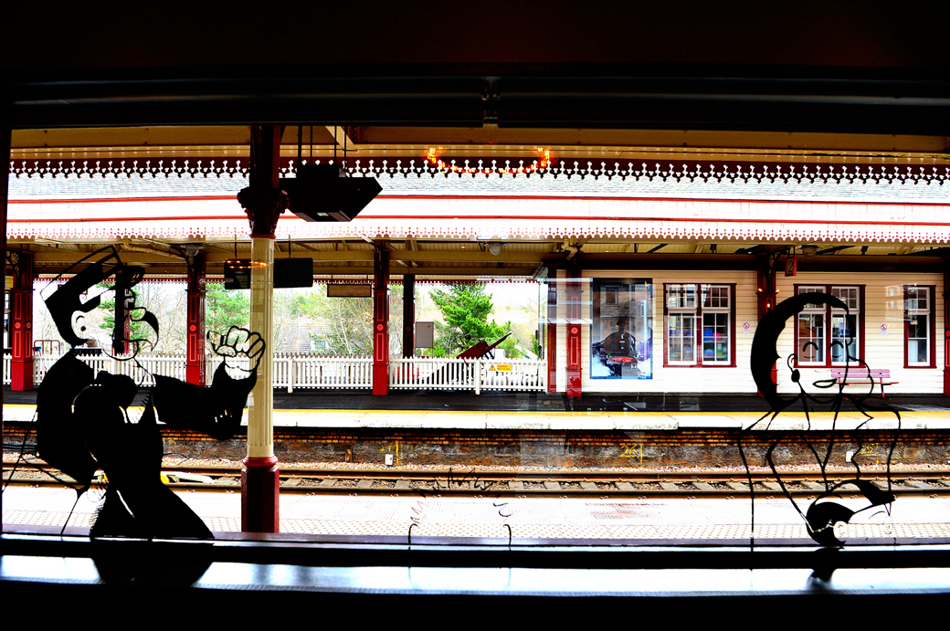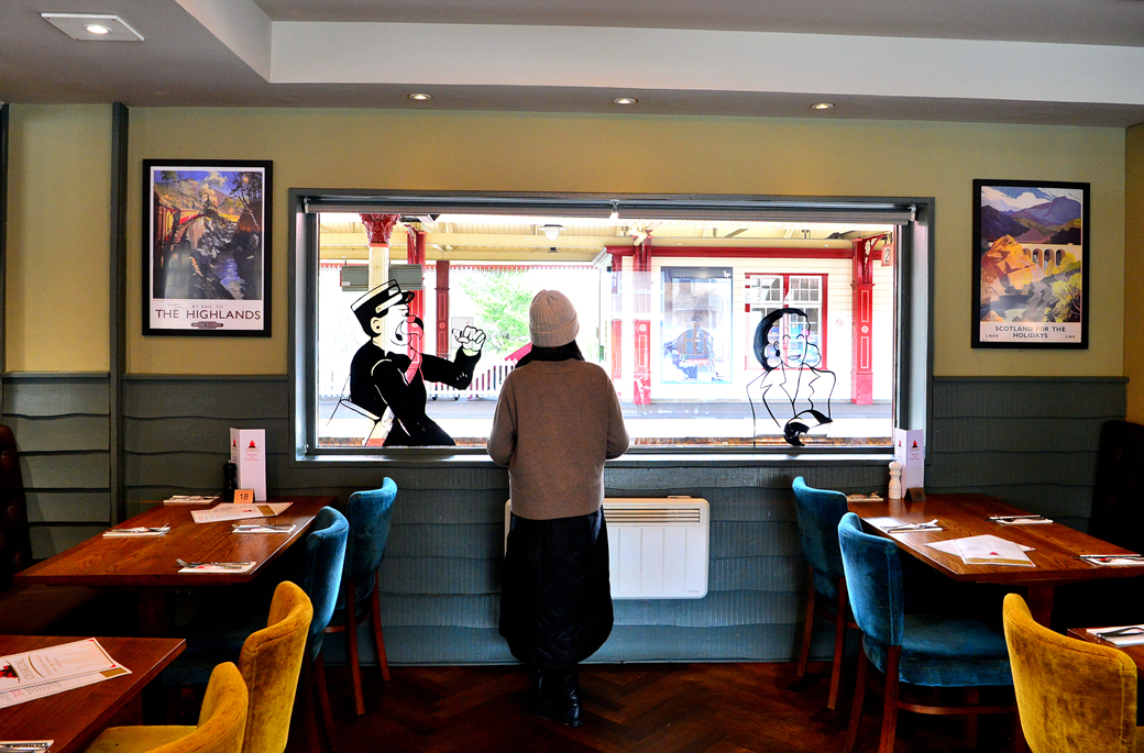역사 입구 옆에는 이 증기 기관차의 이용에 대한 자세한 안내판이 붙어 있다.