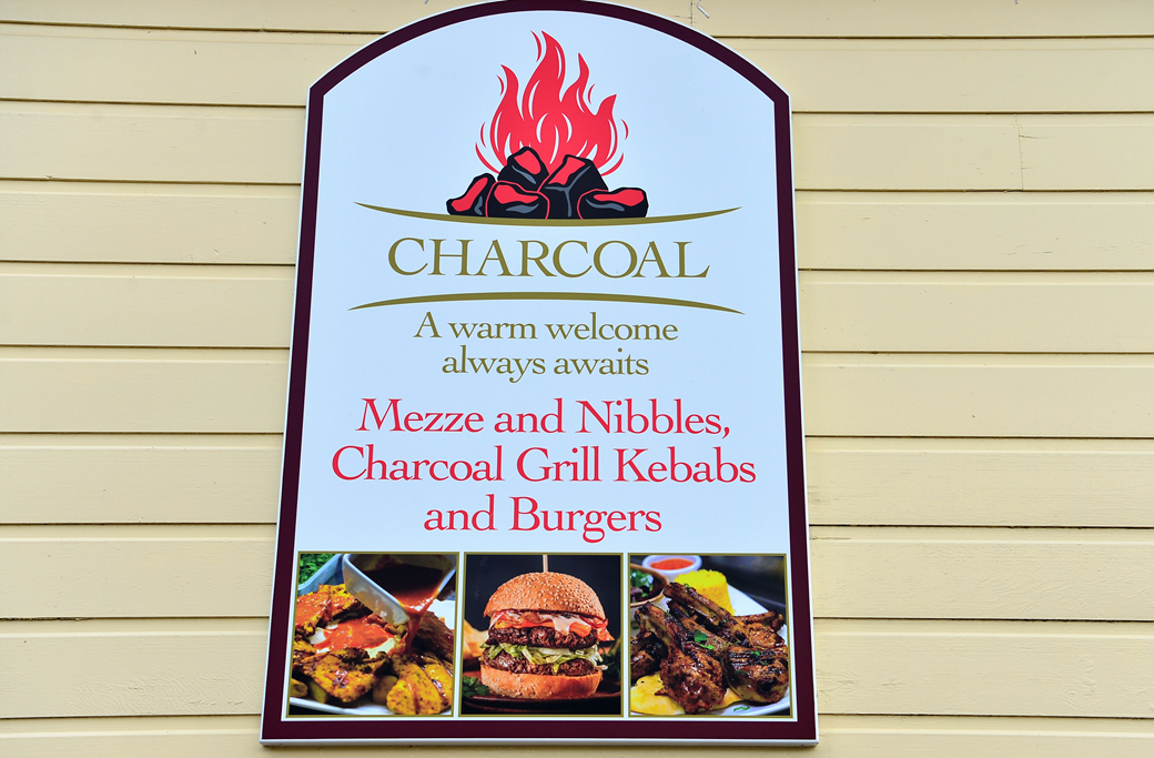 벽면의 홍보 그림이 호기심을 끌어 살펴보니, 음식점이다.