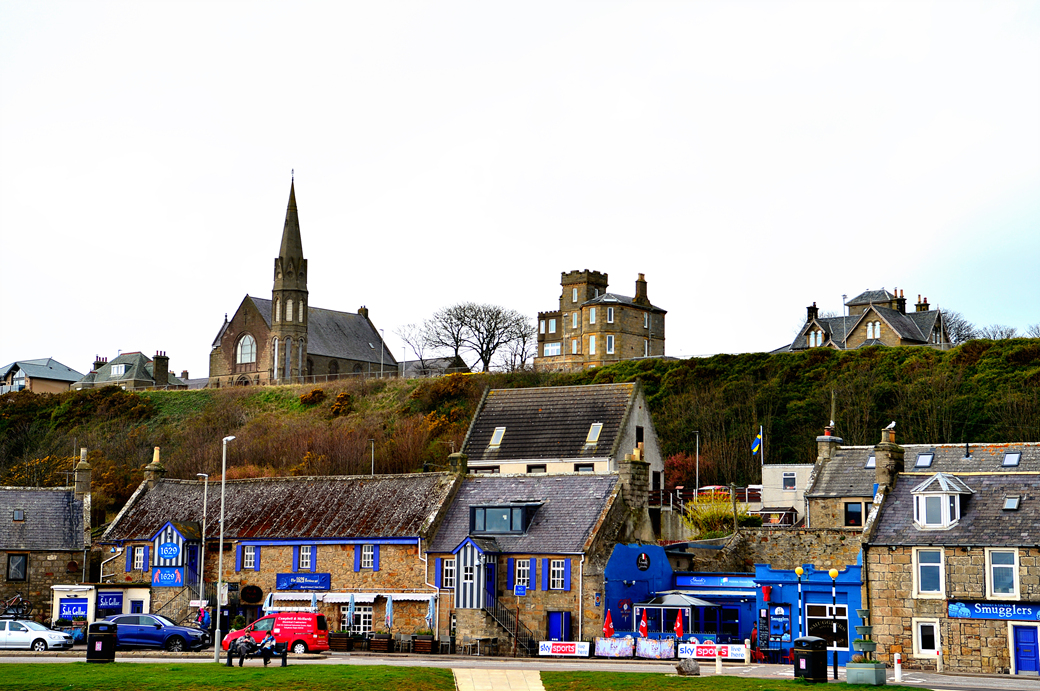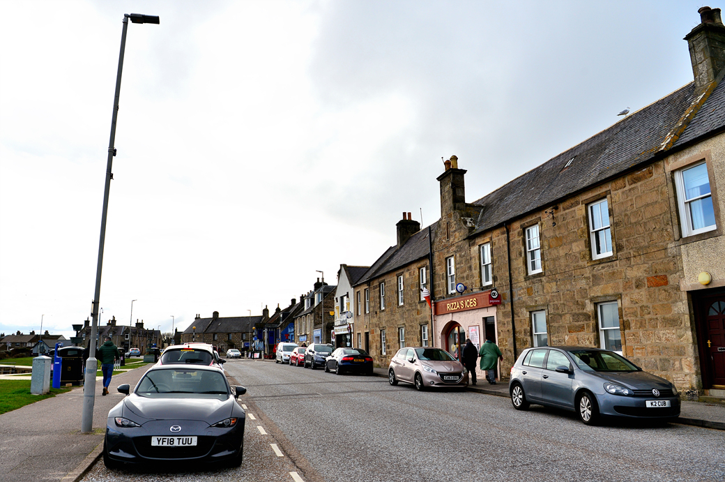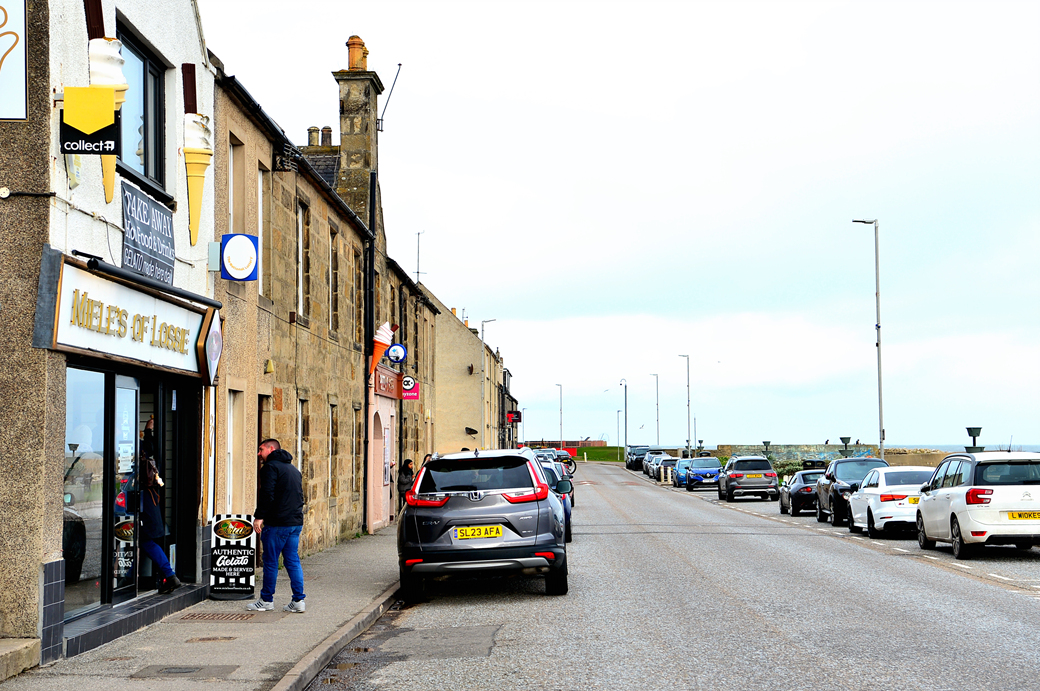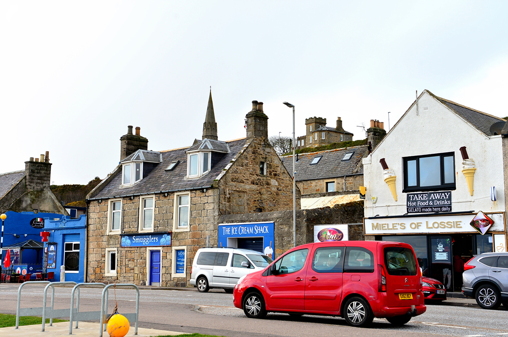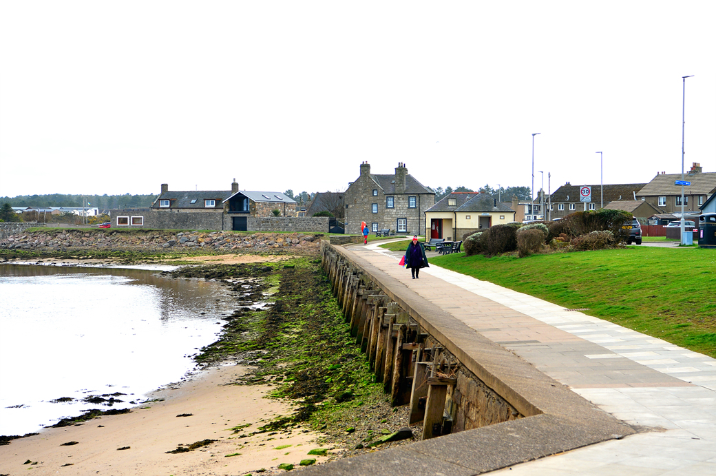 잠시 후에 도로변에 가지런히 늘어선 주택들이 보이는데, 엘긴 북쪽의 작은 바닷가 마을 로시머스 Lossiemouth에