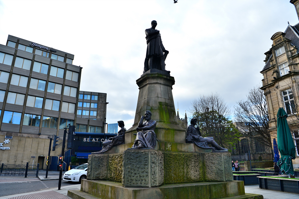 이 기념물은 기계 공학 협회의 초대 회장이었던 조지 스티븐슨(1781-1848)의 청동상으로, 노섬벌랜드 태생인