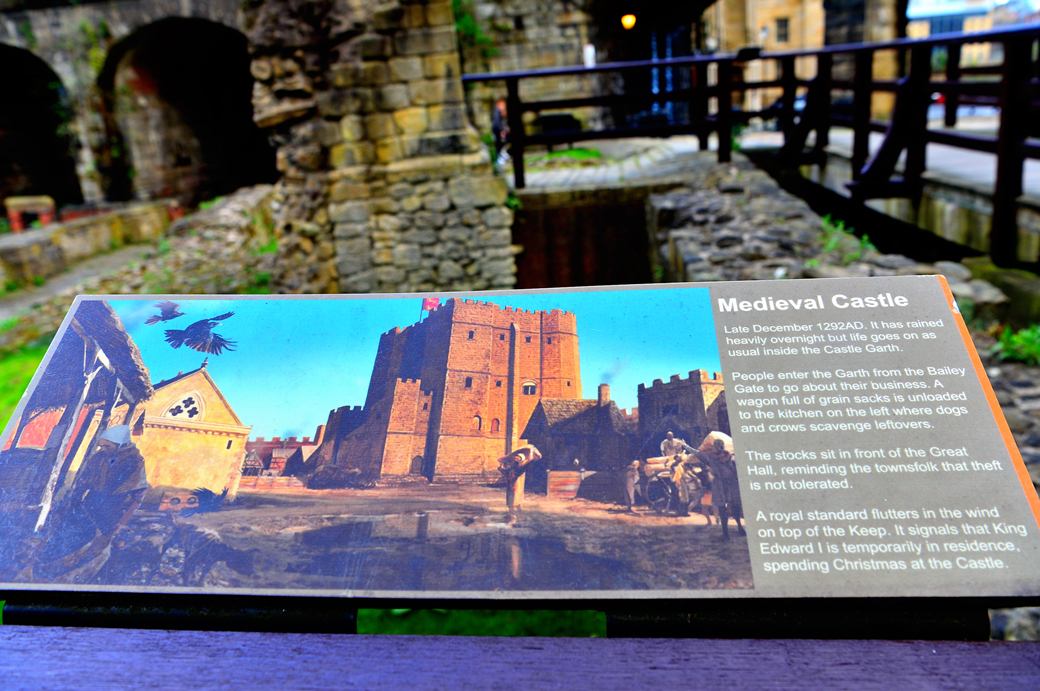중세 시대의 생활상을 보여주는 안내판도 있는데, 사람들이 곡물을 가득 싣고 성으로 향하는 모습도 보여주고 있다.
