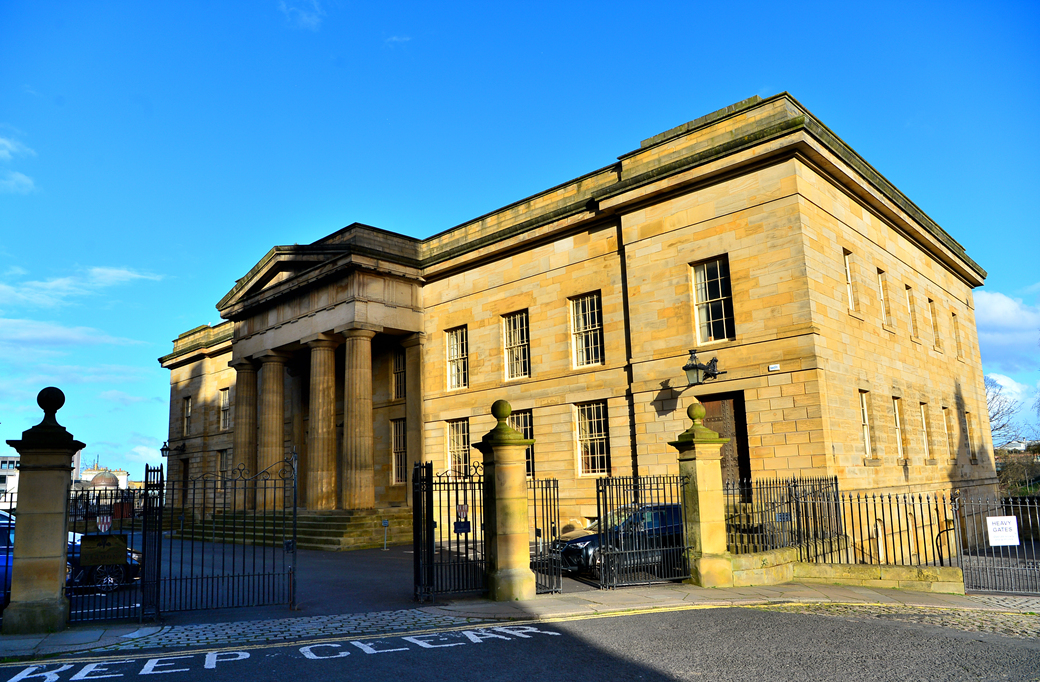 성채 맞은편의 단정하게 지어진 이 건물은 Moot Hall, Newcastle upon Tyne이다.