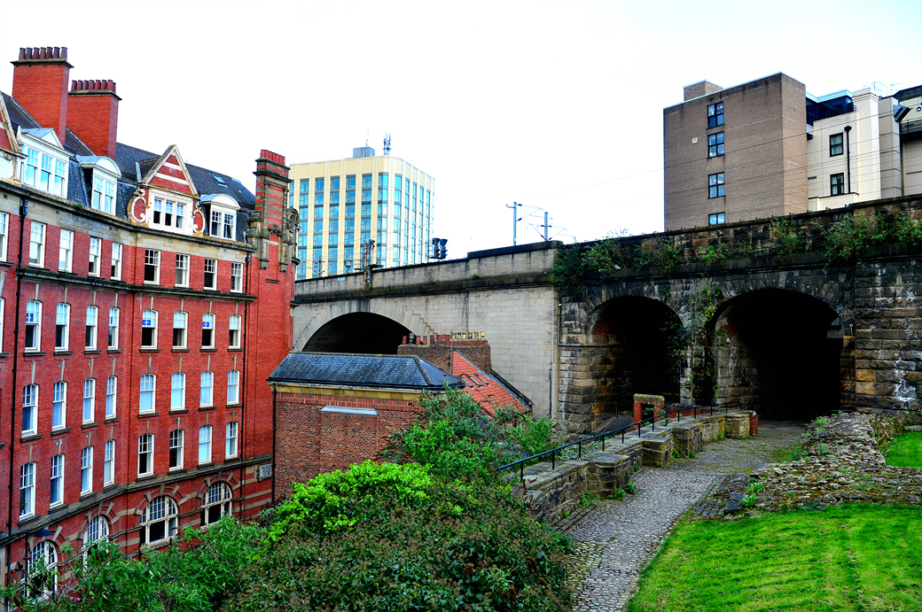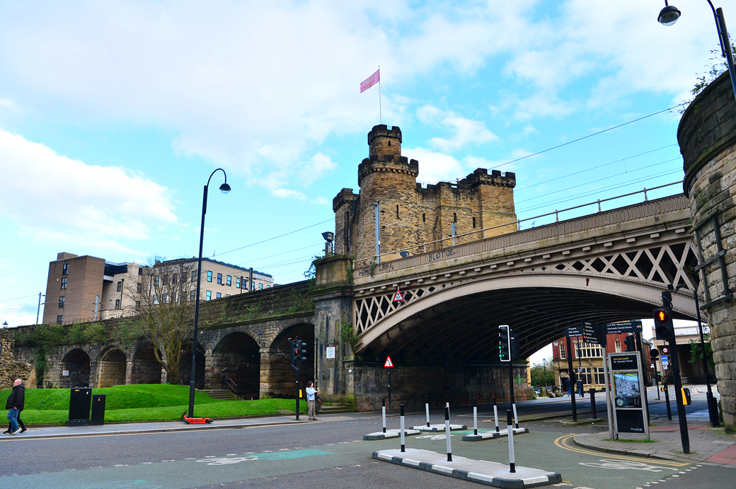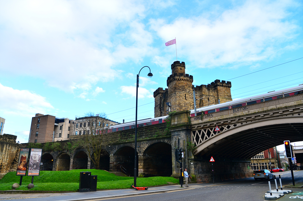 철길 너머의 깃발이 꽂혀 있는 건물이 뉴캐슬 성 Newcastle Castle이다.