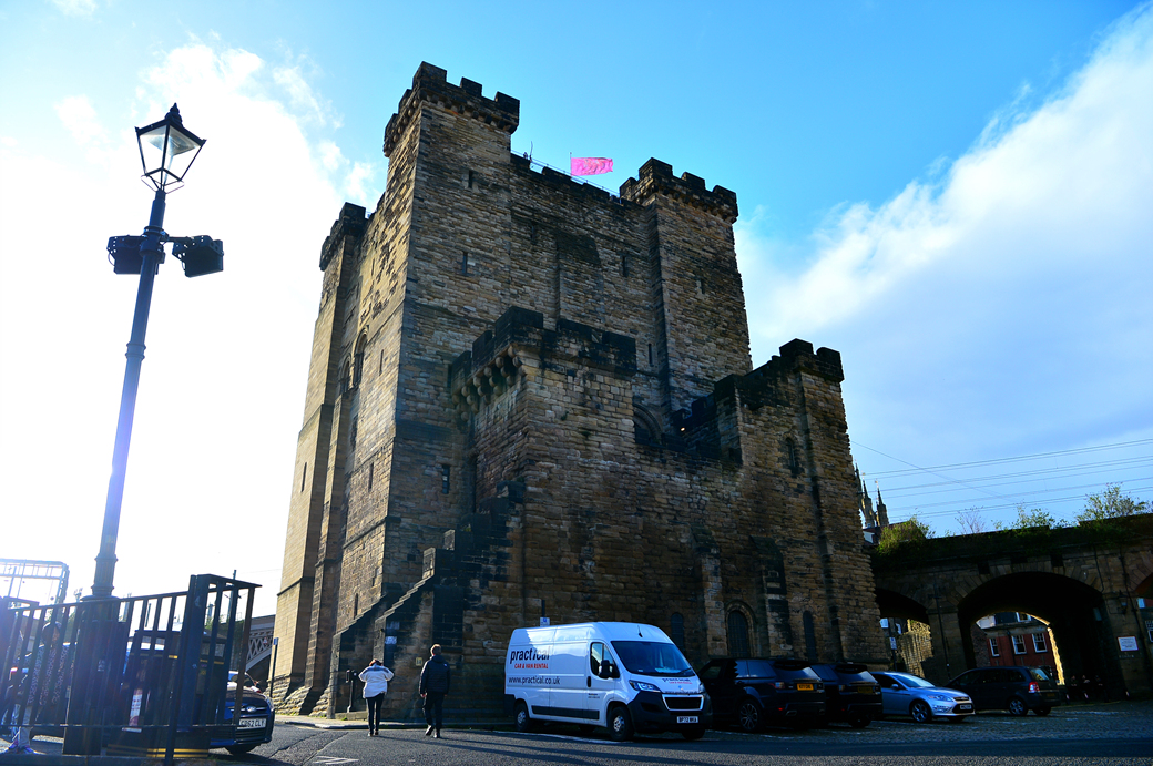 강 쪽 방향에서 바라본 Newcastle Keep 모습이다.