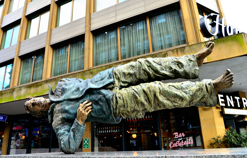 이 건물들이 들어서 있는 삼거리의 작은 공터에 동상이 세워져 있다.