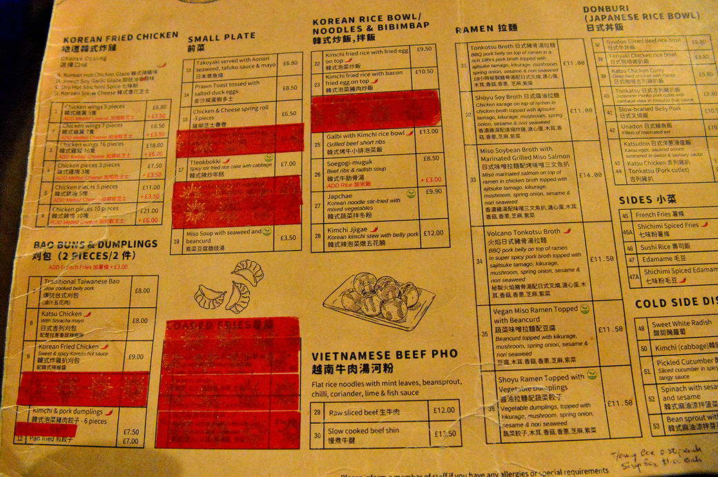 메뉴를 보니 베트남 쌀국수, 일식, 중식 등이 섞여 있고, 한식도 보인다.
