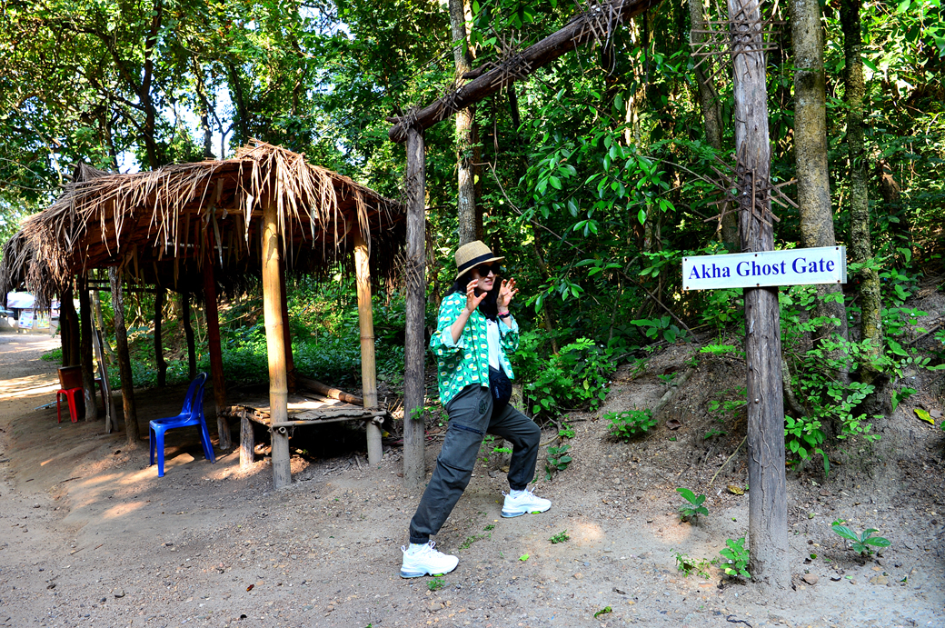 카렌족 마을 입구를 들어서는 우리 투어 팀 모습이 무척 단출하다.