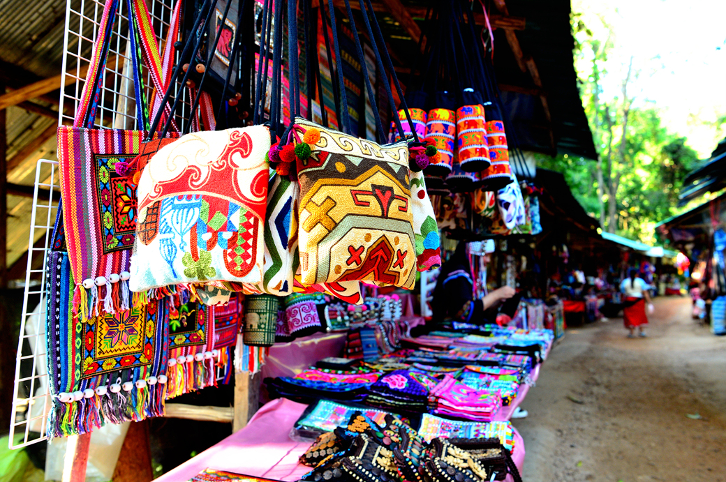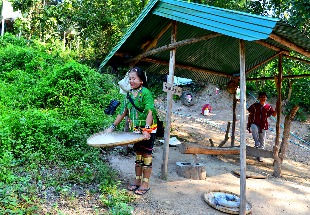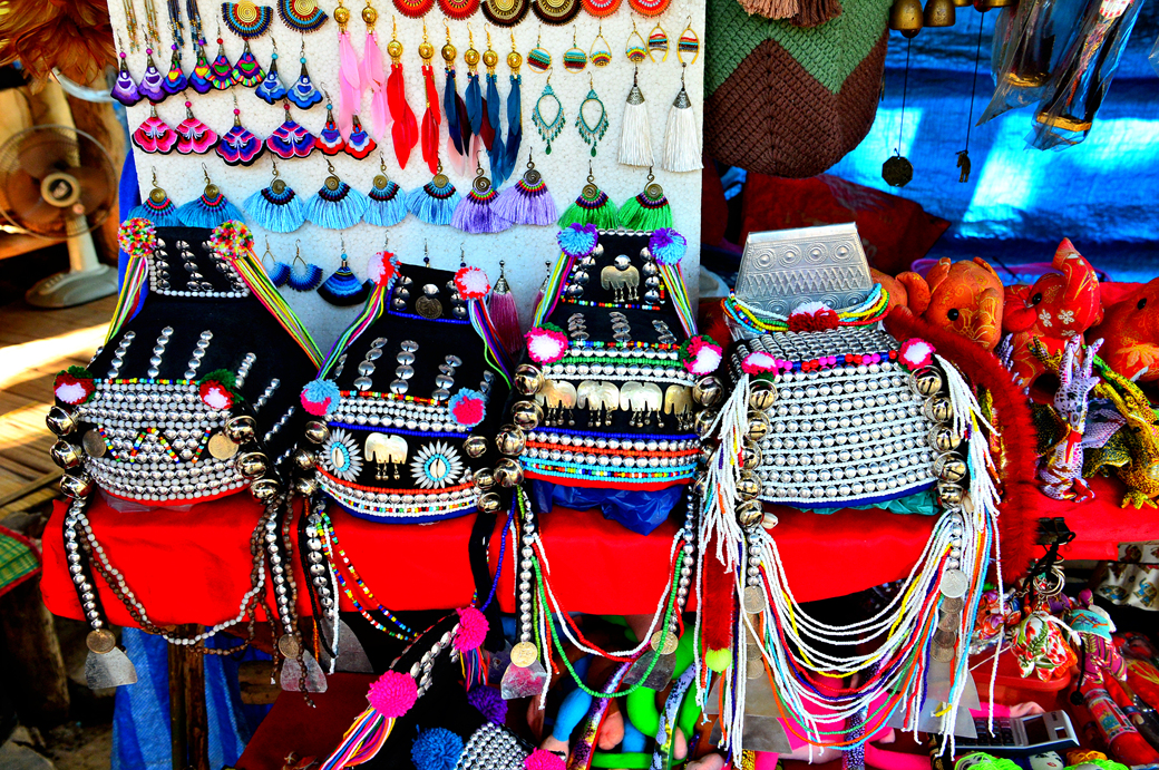 카렌족을 상징하는 각종 화려한 의상과 액세서리들이 눈길을 끈다.