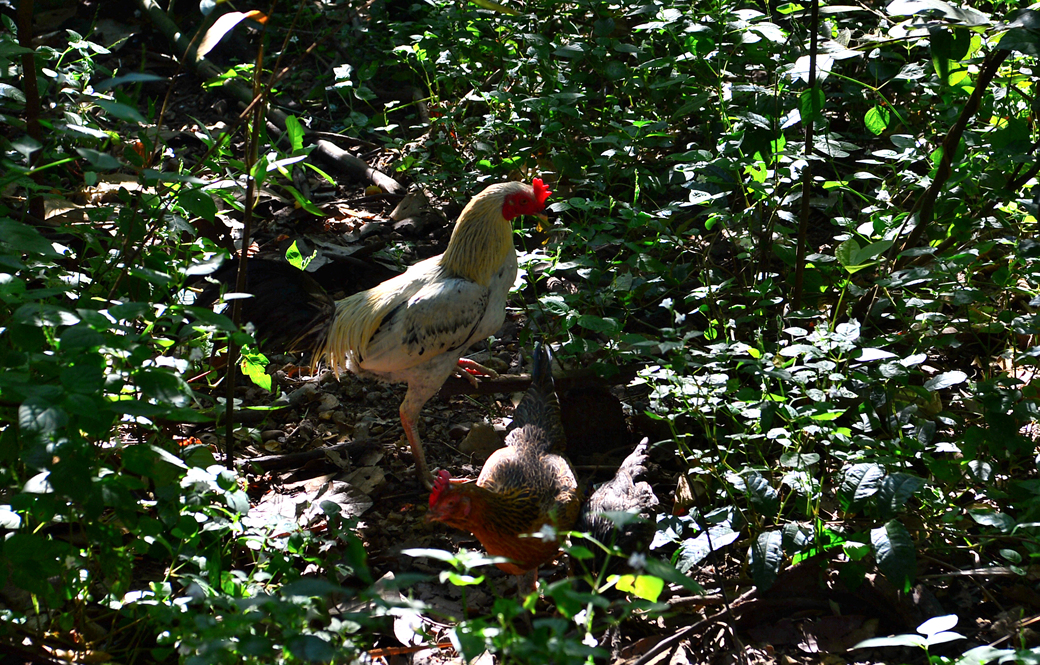 길 옆 숲 속의 닭들이 묘한 감정을 불러온다.