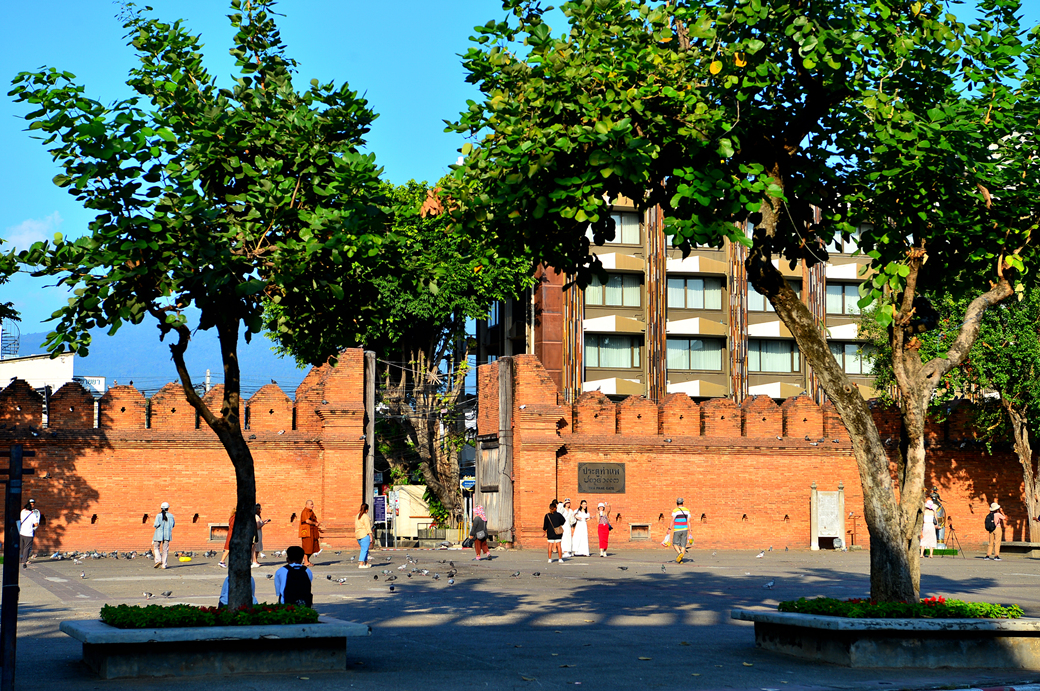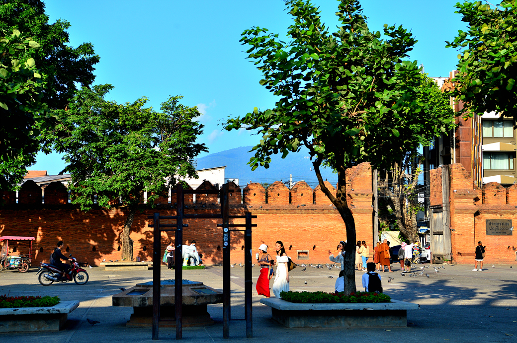 맥도널드 앞에서 보이는 도로 건너편의 타패 게이트 Tha Pae Gate 앞 모습이다.