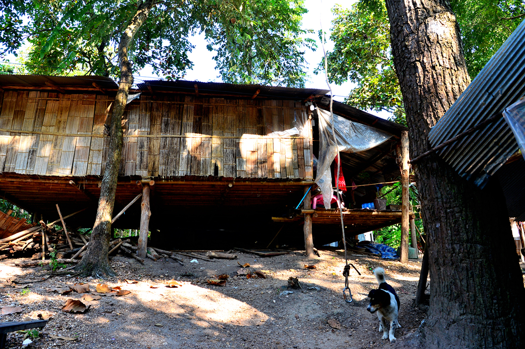 가옥 외부로 돌아가며 각종 옷가지들이 주렁주렁 걸려 있다.