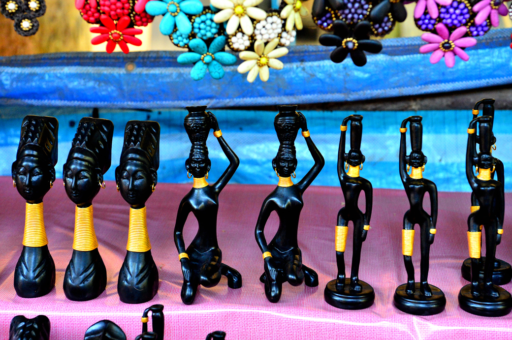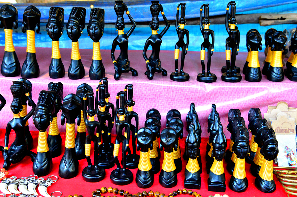 카렌족의 긴 목을 상징하는 각종 인형들이다.