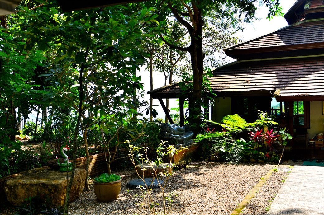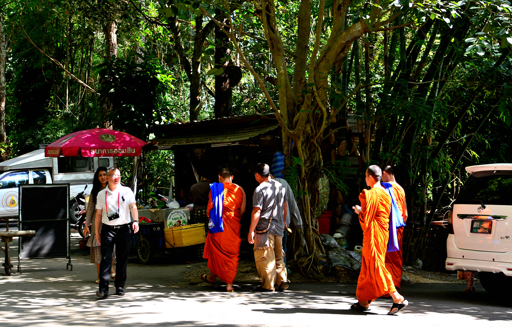 아래쪽에서 전형적인 태국 양식의 건축물이 보인다.