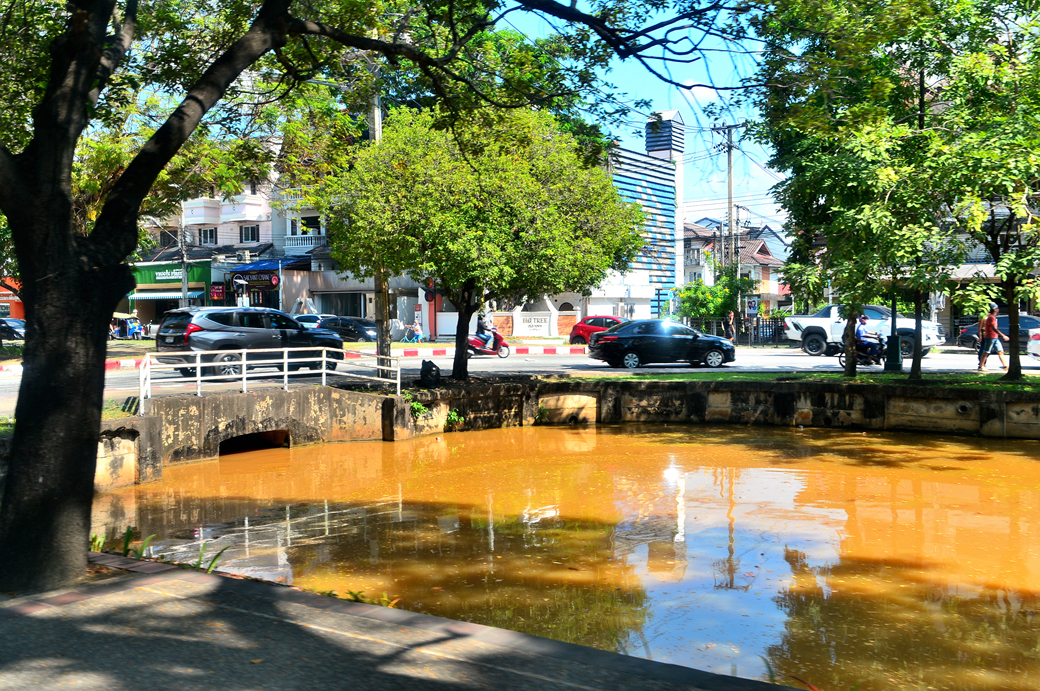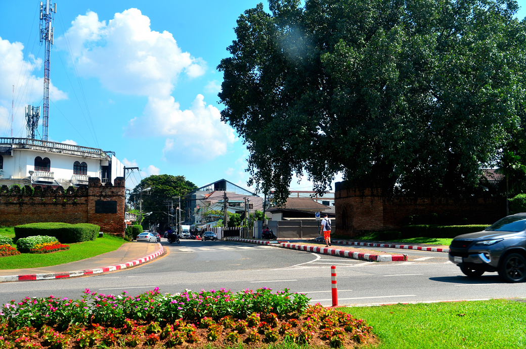 치앙마이 올드 시티를 둘러싼 성벽과 해자가 눈에 들어온다.
