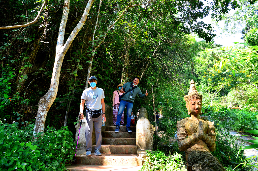다시 사찰로 오르는 길에 만난 우리 투어 일행~