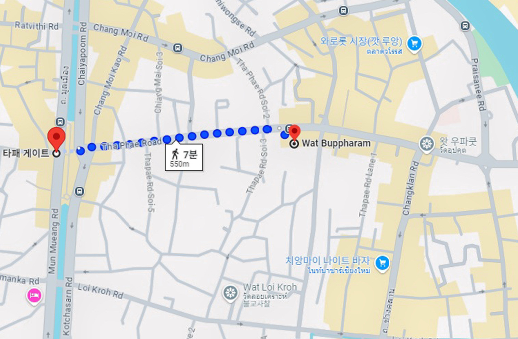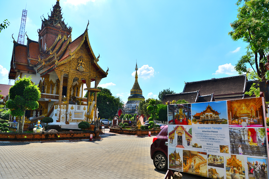 타패 로드에 위치한 이 왓 부파람 Wat Buppharam은 타패 로드에서 가장 눈에 띄는 사원으로, 500년의 역사를