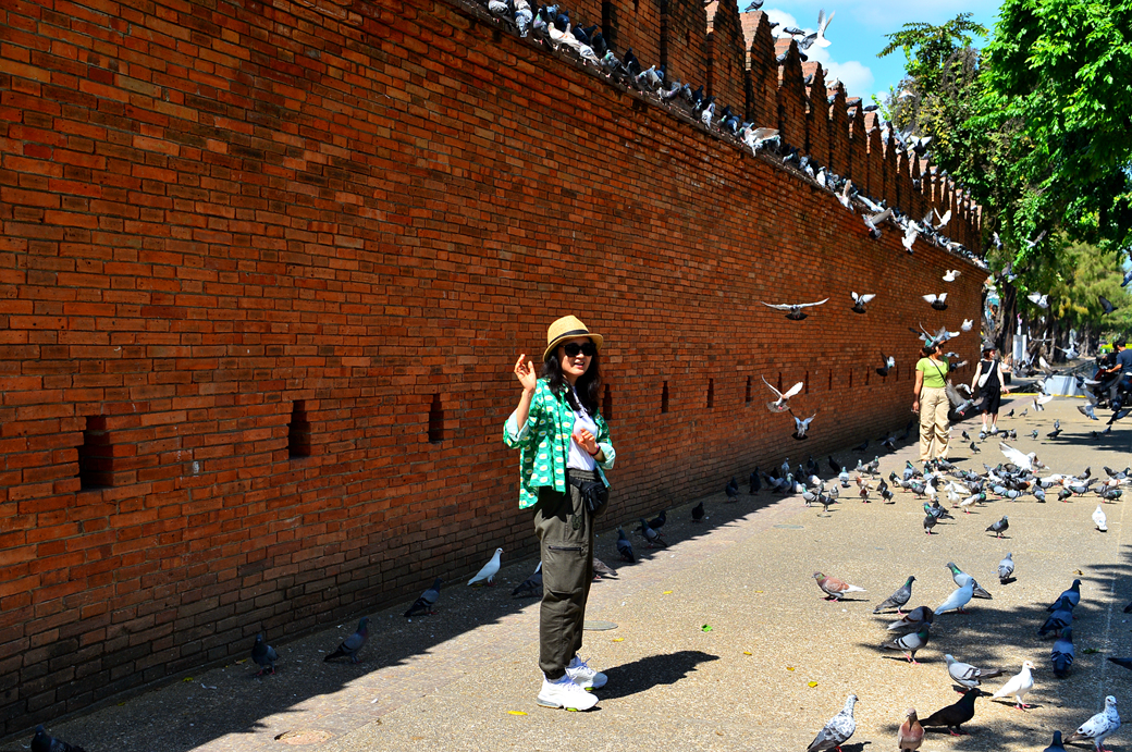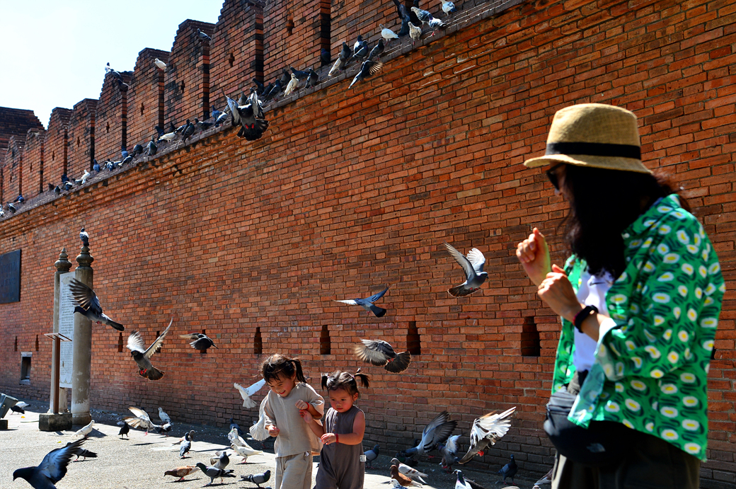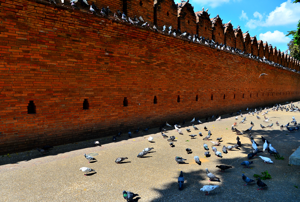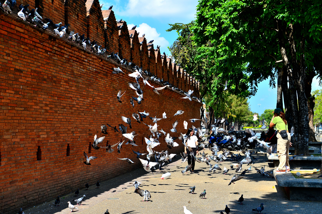 치앙마이 도착 첫 날인 어제 저녁에 잠시 이곳에 들렀을 때는 한 마리도 보이지 않던 비둘기들이 지천으로 깔려 있다.