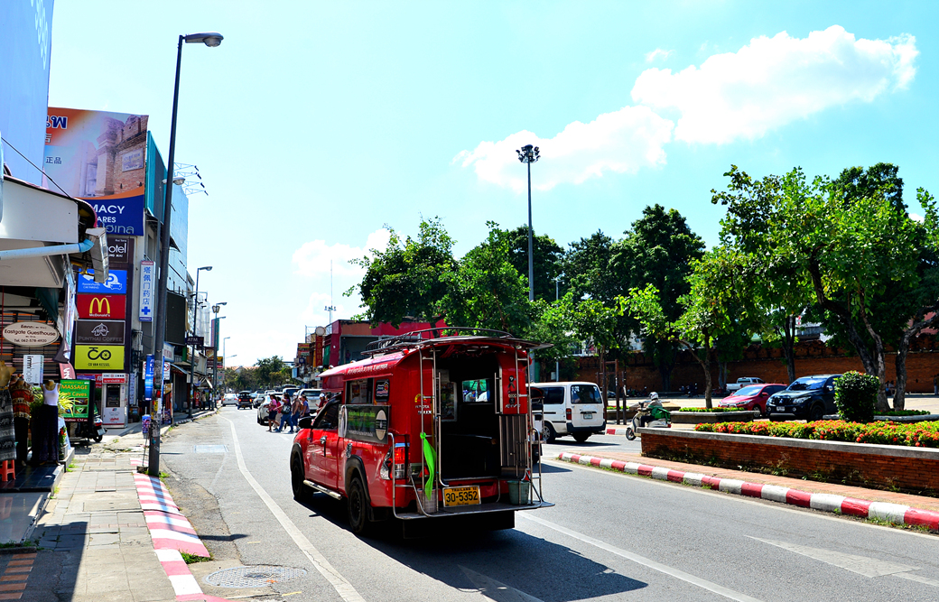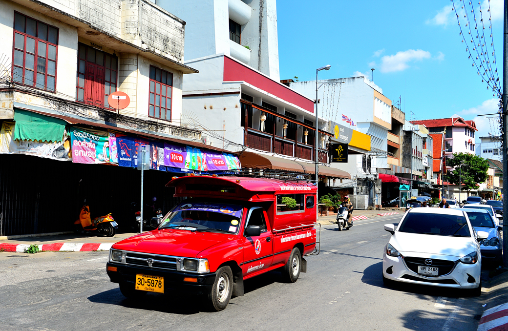 빨간 송태우가 이곳이 태국임을 실감 나게 해 준다.