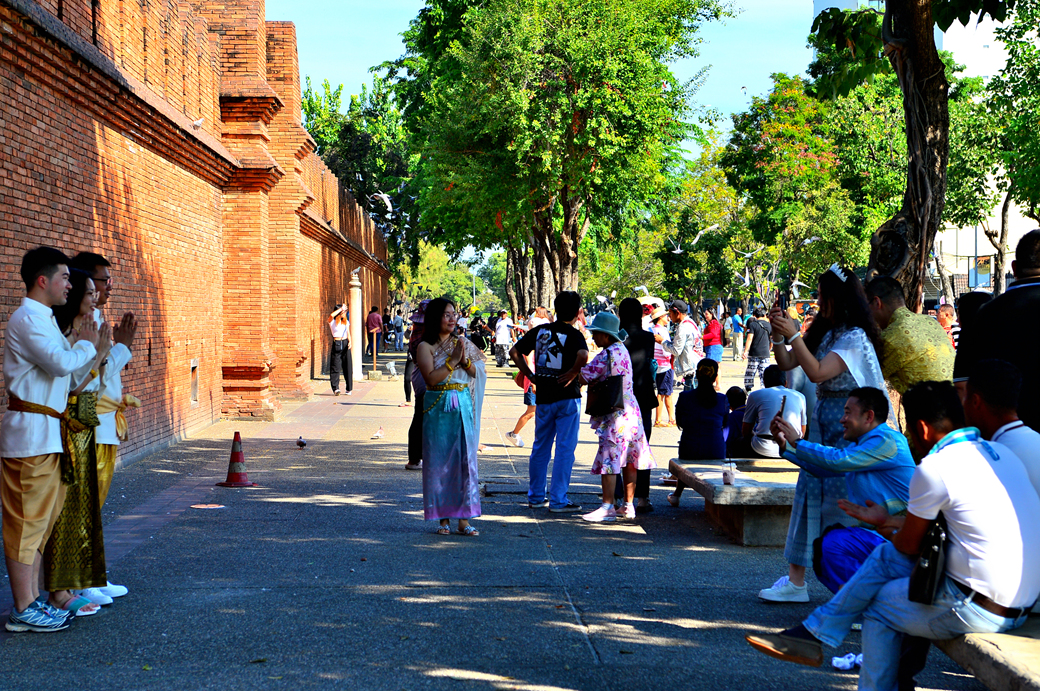 말쑥하게 차려입은 태국 전통의상의 젊은이들이 기념촬영에 여념이 없다.
