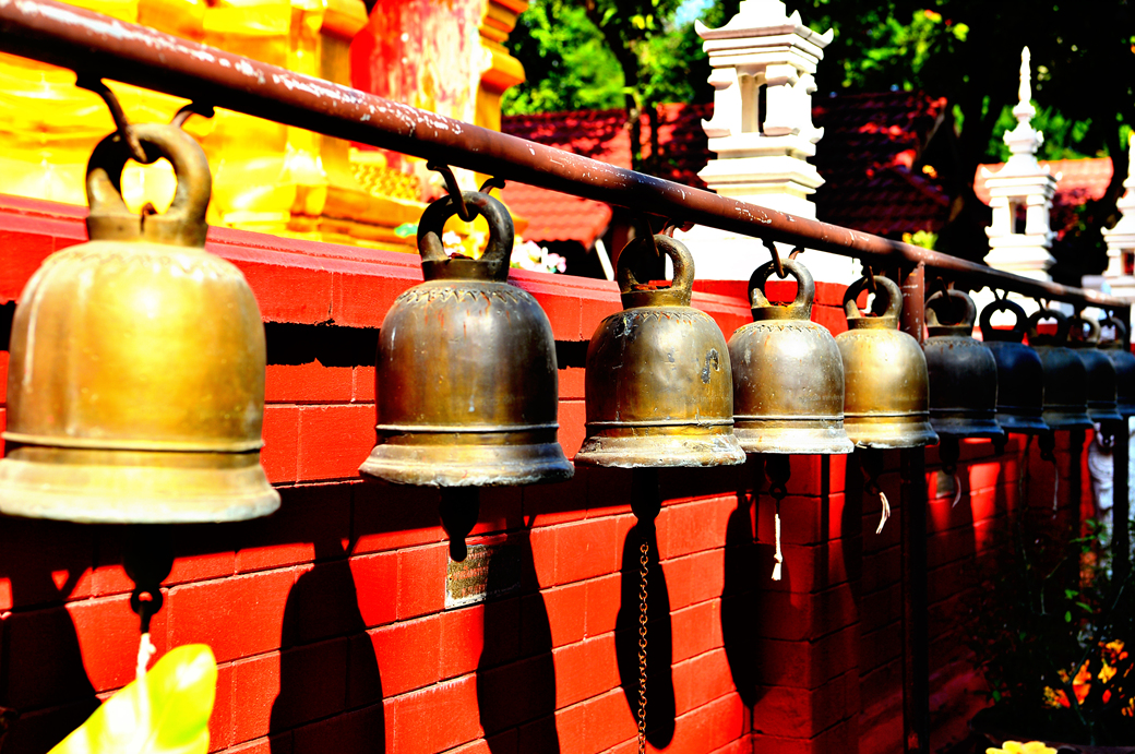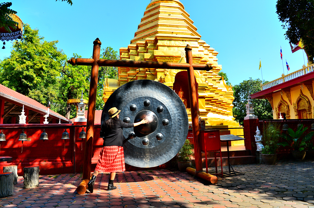 치앙마이에서 아름답기로 손꼽힌다는 황금빛 불탑 체디 주변에는 많은 종들이 비치되어 있는데, 이곳은 종을